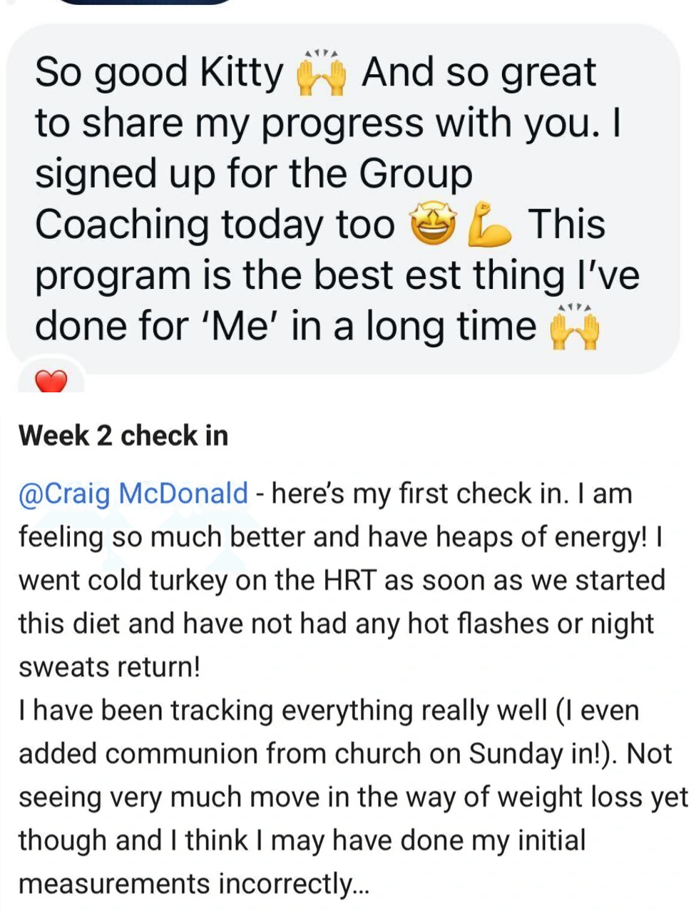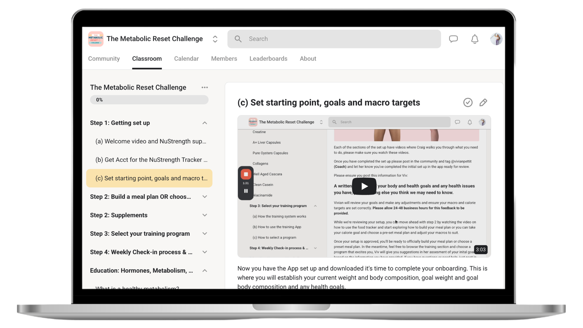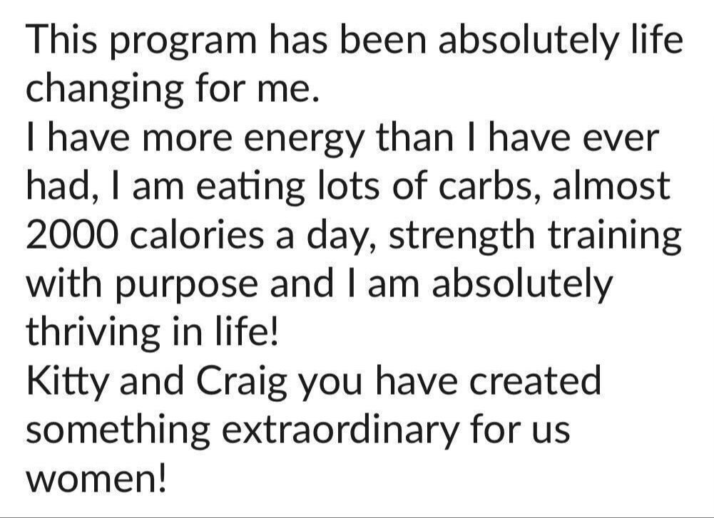 Once you sign up, you’ll be invited to join our private Metabolic Reset Challenge Community platform. Inside, you’ll find all your course materials, daily lessons, and step-by-step instructions on how to set up the NuStrength Tracker app and get started. Your 21 days officially begin when you join, giving you full access to work directly Kitty, Craig and the team.